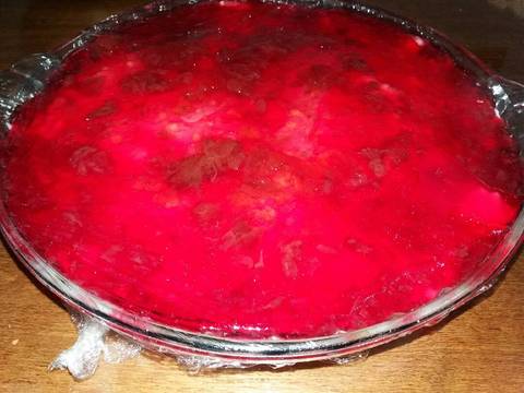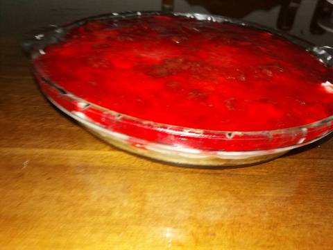 - Retirar y cubrir con la gelatina previamente mezclada con la mermelada de frutilla.